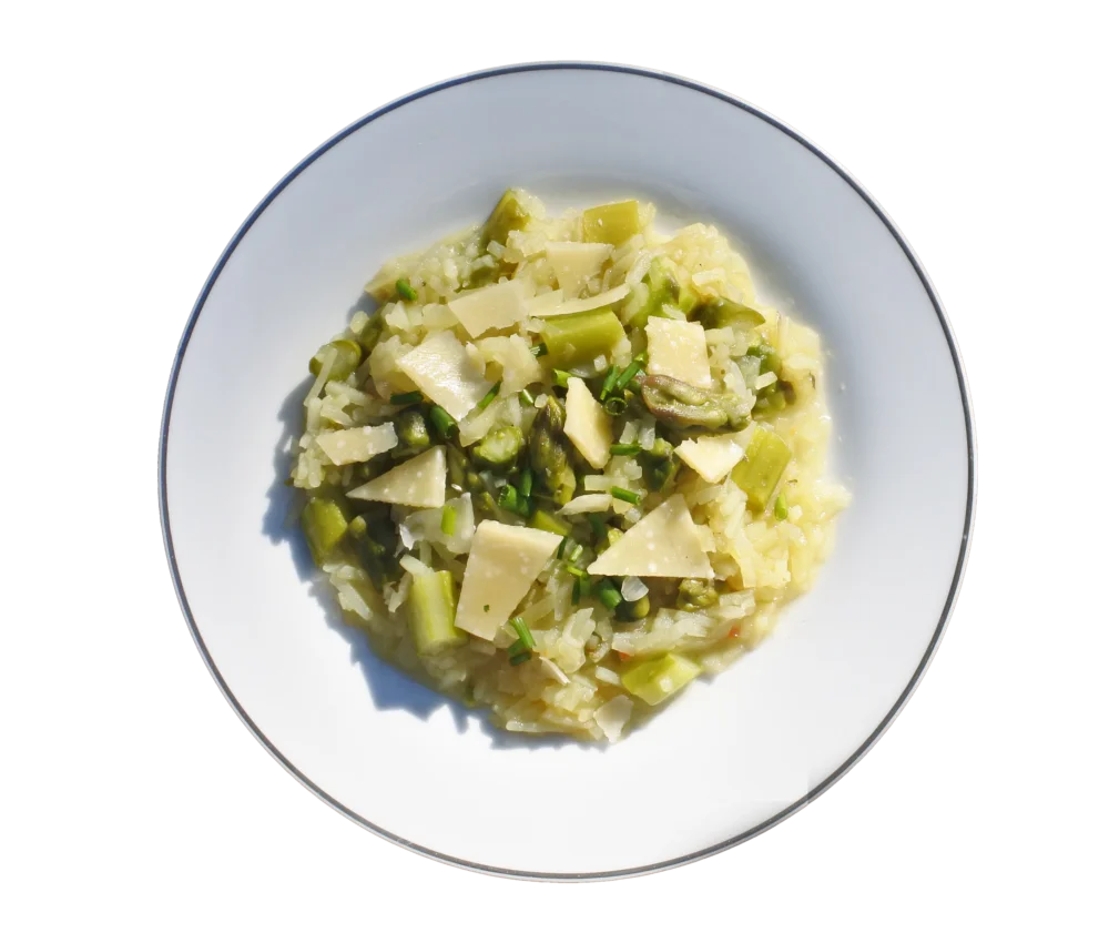 To finish, stir in the Parmesan flakes, black pepper, and salt to taste. Taste to check the flavour.